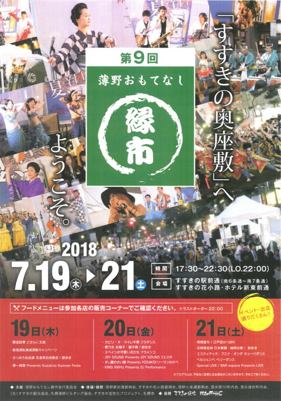 すすきの花小路も会場となり、会員ビルからもたくさんのお店が屋台出店します。ぜひお越しください。